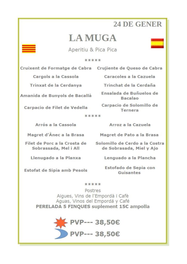 📞 972 673 296 📩 restaurantlamuga@gmail.com 📍 Situación 🕘 13-00, 15:30 i 20:00 a 23:00