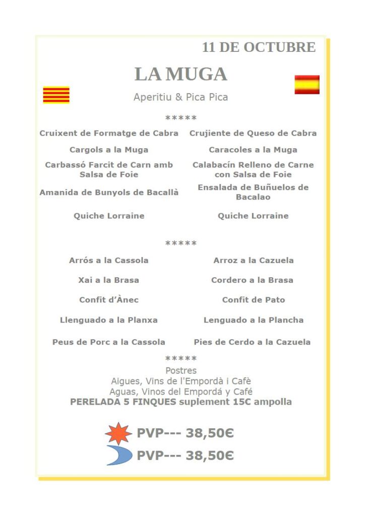 📞 972 673 296 📩 restaurantlamuga@gmail.com 📍 Situación 🕘 13-00, 15:30 i 20:00 a 23:00