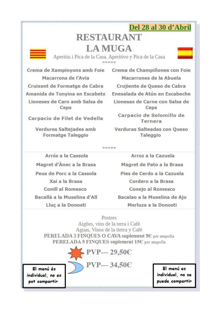 📞  972 673 296                         📩  restaurantlamuga@gmail.com                        📍  Situación                        🕘  13-00, 15:30 i 20:00 a 23:00